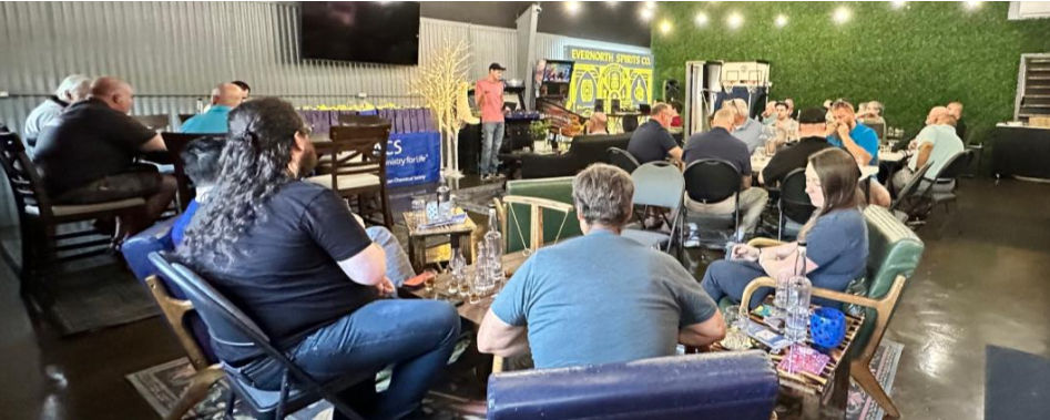 This well attended event took place on Wednesday, August 27 at EverNorth Spirits, Co. Everyone had a great time and all walked away with a bottle of bourbon.